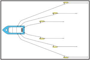 • Tangle-Free Trolling: Run your lines at varying distances to prevent tangles. Your outside boards should have the shortest leads, with the deepest lines on the inside.